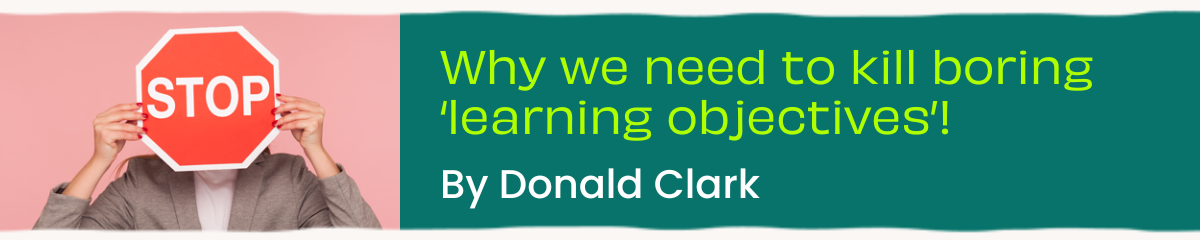 A critical note related to the use of learning objectives, as you can expect from Donald Clark.