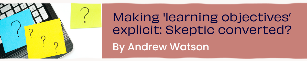 Andrew Watson shares his scepticism about learning objectives and comes up with some great answers for himself, and you!