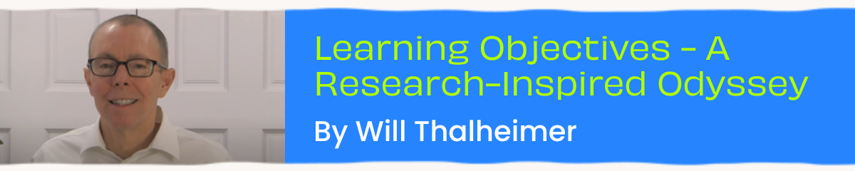 The use of learning objectives has become so obvious that we take their effectiveness for granted. Don’t! Will Thalheimer presents the details that matter, and you’ll be surprised! Become a Learning Objective Master by applying the presented insights.