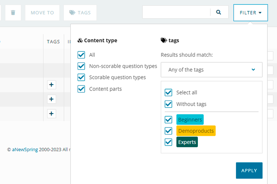 We’ve made it possible to search and filter for content that you are looking for through tagging within the content library.