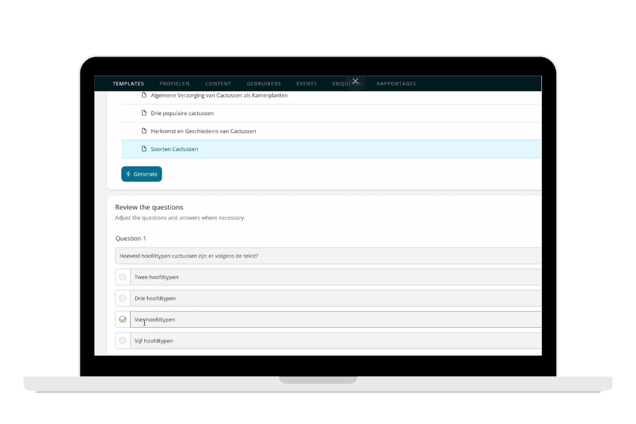 To make things easier, we’ve added the AI Question Generator to our platform. This handy tool supports you in creating multiple-choice questions and answers (and let’s face it, coming up with a convincing wrong answer isn’t as easy as it sounds!).
