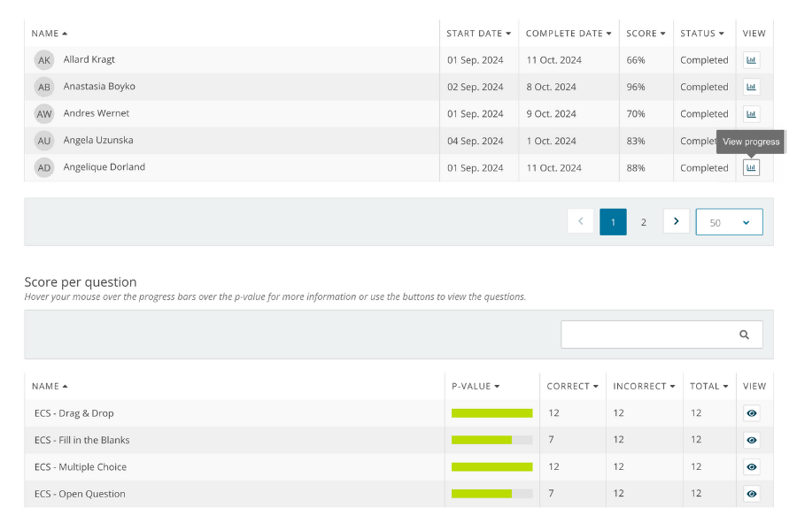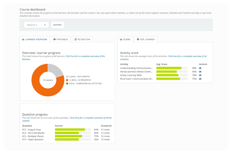 With the comprehensive dashboard, trainers can provide targeted support to their learners, both individually and at the group level.